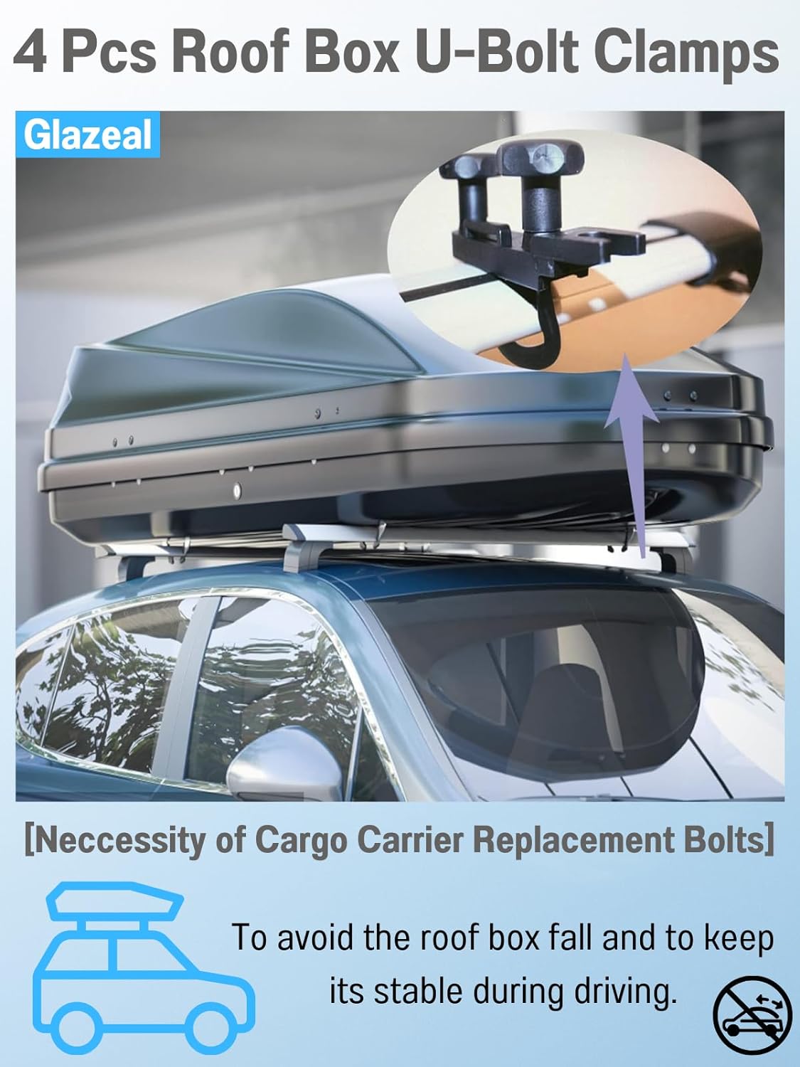 - 【Easy to Install】Easy to install, accurate installation size and long enough bandage to fit your roof box and daily opening and closing box, the set includes 4 stainless steel U-bolts, 4 rubber washers, 4 back plates, 8 lock nuts and 2 bandages 1 hole sealing stickers.